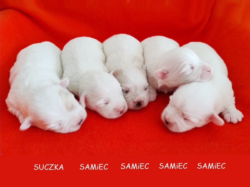 Przyszły na świat szczenięta dnia 09 czerwca 2024r. Mamą jest suczka ROXANNE, tatą pies CHARLIE. Oboje rodzice są championami rasy Coton de Tulear o białym umaszczeniu. Ich potomstwo to pięć zdrowych, o białym umaszczeniu szczeniąt. Cztery samce i jedna suczka, oczywiście rasy Coton de Tuléar.