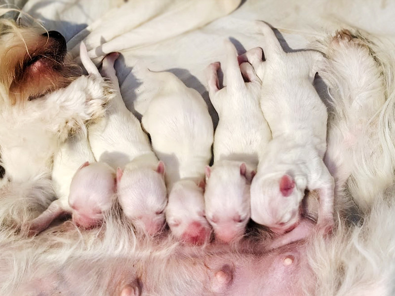 Przyszły na świat szczenięta dnia 11 marca 2024r. Mamą jest suczka BRIDGET JONES, tatą pies CHARLIE. Oboje rodzice są championami rasy Coton de Tulear o białym umaszczeniu. Ich potomstwo to trzy zdrowe, o białym umaszczeniu suczki,  oczywiście rasy Coton de Tuléar.