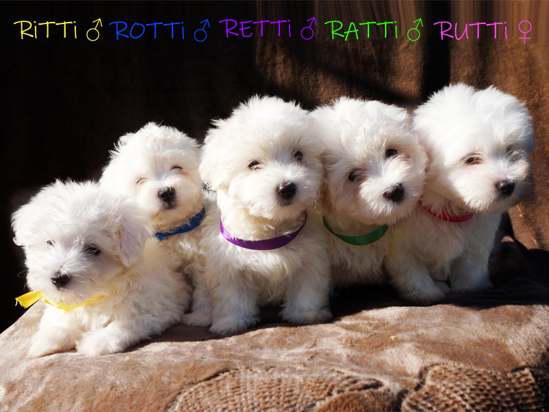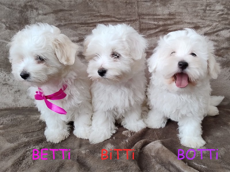 Trzy suczki: BITTI, BOTTI i BETTI.  Szczenięta są już gotowe do zmiany domu.