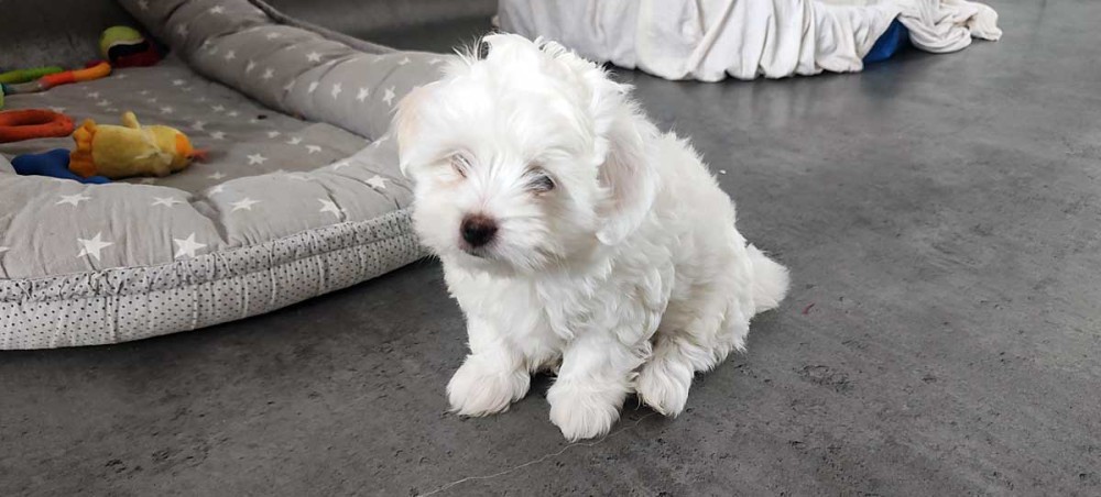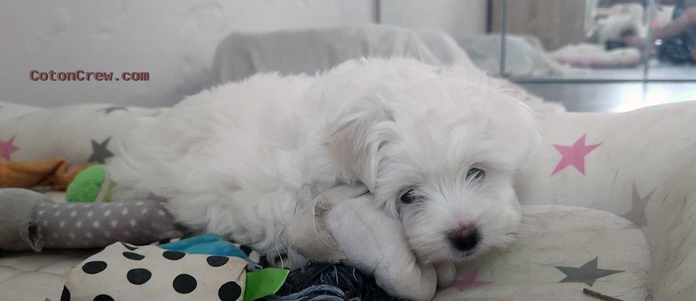 W naszej domowej hodowli Coton Crew UCI w Krakowie, 11 stycznia 2025 roku, na świat przyszły szczenięta rasy Coton de Tulear. Matka, ROXANNE, bez komplikacji, siłami natury urodziła pięć zdrowych i pełnych energii maluchów – cztery suczki i jednego pieska. Wszystkie szczenięta Coton de Tulear mają charakterystyczne białe umaszczenie, zgodne ze wzorcem rasy. Coton de Tulear to wyjątkowy, królewski pies z Madagaskaru, znany ze swojego niezwykłego charakteru i jedwabistej sierści.
