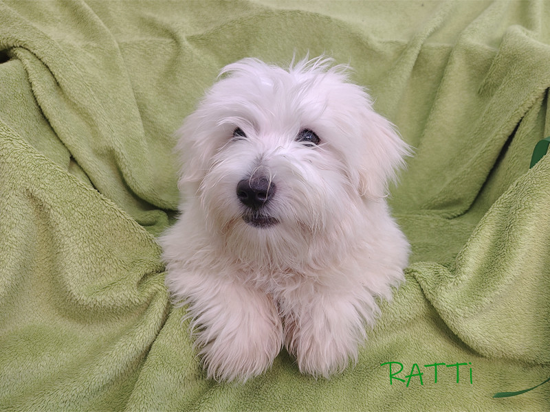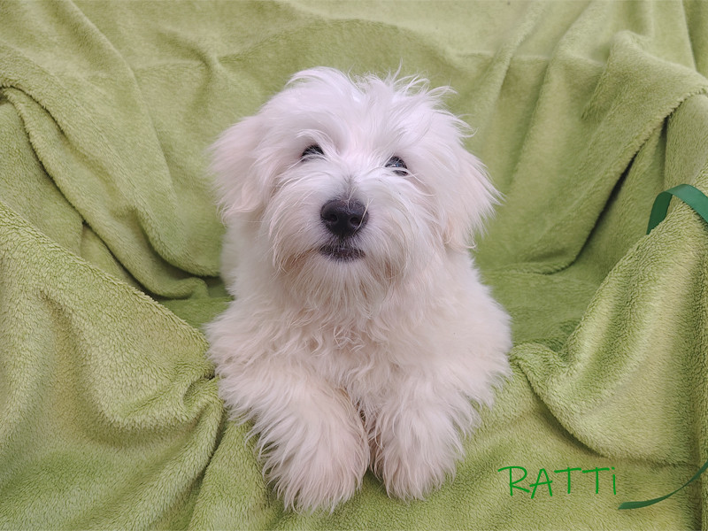RATTI - Samiec. Zielona wstążka. Znalazł nowy dom w Londynie w Wielkiej Brytanii.