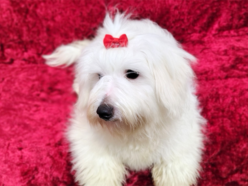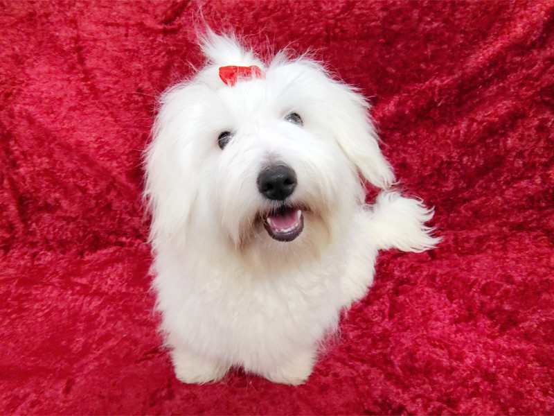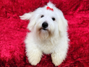 Cztery samce i jedna suczka. Wszystkie białe, całe i zdrowe. Coton de Tuléar – królewski pies z Madagaskaru.